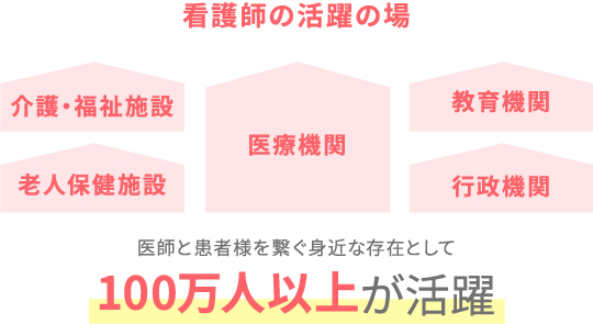 - 総合病院、診療所(クリニック)、訪問看護ステーション、保健所、保健センター、介護・福祉施設、教育機関、一般企業etc…